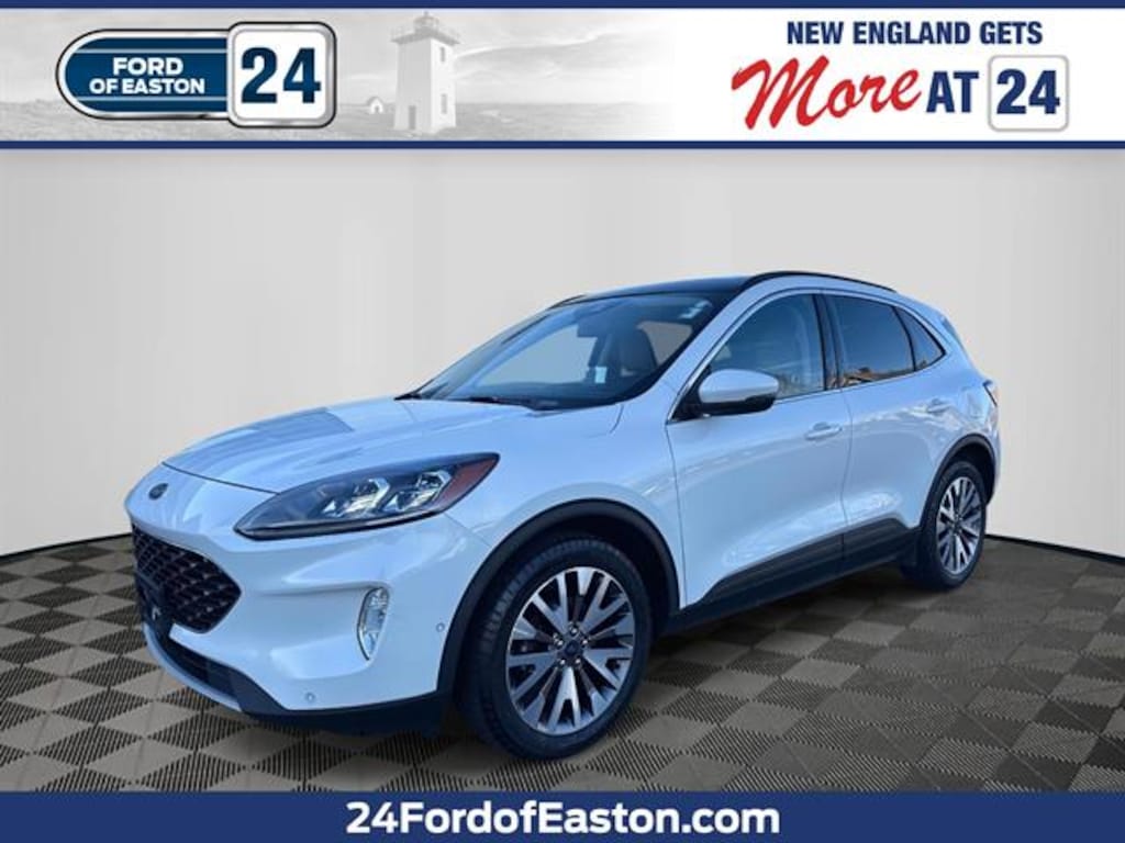 FULLY SERVICED CARFAX One-Owner Clean CARFAX Equipment Group 401A, Front License Plate Bracket, Panoramic Vista Roof, Titanium Premium Package Experience luxury and capability with this White 2020 Ford Escape AWD Titanium. Powered by an efficient EcoBoost 2.0L Turbo engine and 8-speed shiftable automatic transmission, this SUV delivers dynamic performance and confident handling in all weather conditions. The Titanium trim offers a premium experience with Bang & Olufsen audio, panoramic Vista Roof, heated leather-trimmed seats, and a 12.3" customizable instrument cluster. Enjoy the convenience of a power liftgate, FordPass Connect with Wi-Fi hotspot, remote engine start, and advanced SYNC infotainment with Apple CarPlay and Android Auto. Safety is paramount, with adaptive cruise control, front automatic emergency braking, lane keeping assist, blind spot monitoring, rear cross traffic alert, and a fully automated active parking system. The Escape Titanium's modern styling, color-adjustable ambient lighting, and ample cargo space make every drive comfortable and versatile. Don't miss your chance to own a top-tier SUV designed for both daily drives and weekend adventures. 24 Ford of Easton is Massachusetts's Premier Family-Owned New Ford and Used Car Dealer, serving the needs of customers from South Easton to Brockton, Bridgewater to Stoughton, all the Greater Boston area, and everywhere in-between for nearly 20 years. In addition to sales, we also offer a state-of-the-art service department with all Ford Master-Certified Technicians, a Quick Lane Tire and Auto center for quick in-and-out service, and of course an outstanding Parts department. 24 Ford of Easton is your one-stop-shop for all your automotive needs. So don't hesitate. Call us now and ask to speak with one of our fully certified and customer-friendly Sales Consultants. From there, you will be able to schedule a test drive, Brake job or Oil Change of any of our 11 locations. We have New and Pre-Owned vehicles on the lot! DEALER FINANCING REQUIRED FOR ONLINE PRICE!!!