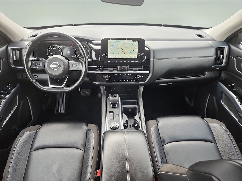 Nissan Pathfinder SL. Purchased the car July 2021 when they first came out. I love everything about this car. I have not had any issues to date. Just went thru a snow storm with about 7inches of ice and snow. I am on a pretty steep hill and zero issues in the snow and ice. I really can't think of an issue i have with this car. I have taken this on 9 hour trip with a total of seven and had no issues in the mountains.… - 5.0
