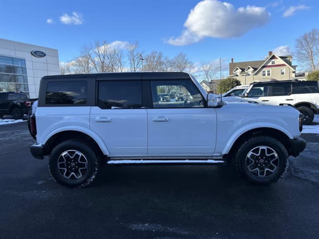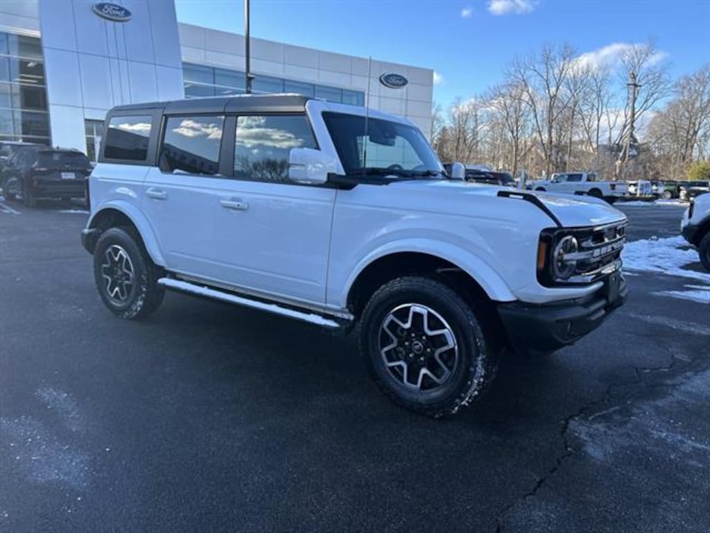 FULLY SERVICED CARFAX One-Owner Connected Navigation, Equipment Group 313A, Front License Plate Bracket, Hard Top w/Headliner, Keyless Entry Keypad, Roast with Black Onyx Leather-Trimmed/Vinyl Seats Experience adventure and luxury in this White 2023 Ford Bronco Outer Banks 4x4 SUV. Powered by the EcoBoost 2.3L Turbo I4 engine and a 10-speed shiftable automatic transmission, this Bronco is ready for any road or trail. Enjoy the comfort of Roast with Black Onyx leather-trimmed/vinyl seats, a removable hard top with headliner, and heated front seats. Stay connected with SYNC infotainment, wireless Apple CarPlay and Android Auto, FordPass Connect with Wi-Fi hotspot, and an 8-inch touchscreen. Safety features include lane keeping assist, blind spot monitoring, front and rear parking sensors, rear cross traffic alert, automatic emergency braking with pedestrian detection, and a rearview camera. Off-road features like hill descent assist, off-road tuned suspension, and part-time 4WD make this Bronco as capable as it is stylish. Additional highlights: LED headlights and fog lights, remote engine start, keyless entry keypad, running boards, and connected navigation. Discover the perfect blend of rugged capability and premium comfort-schedule your test drive today! 24 Ford of Easton is Massachusetts's Premier Family-Owned New Ford and Used Car Dealer, serving the needs of customers from South Easton to Brockton, Bridgewater to Stoughton, all the Greater Boston area, and everywhere in-between for nearly 20 years. In addition to sales, we also offer a state-of-the-art service department with all Ford Master-Certified Technicians, a Quick Lane Tire and Auto center for quick in-and-out service, and of course an outstanding Parts department. 24 Ford of Easton is your one-stop-shop for all your automotive needs. So don't hesitate. Call us now and ask to speak with one of our fully certified and customer-friendly Sales Consultants. From there, you will be able to schedule a test drive, Brake job or Oil Change of any of our 11 locations. We have New and Pre-Owned vehicles on the lot! DEALER FINANCING REQUIRED FOR ONLINE PRICE!!!Includes: . Ford Blue Advantage Gold Certified Vehicles are covered by a factory-backed limited warranty:- 12 months or 12,000 miles, whichever comes first, of Comprehensive Limited Warranty covering more than 1,000 components. Coverage starts from the expiration of the Ford New-Vehicle Bumper-to-Bumper Limited Warranty or date of Ford Blue Advantage Certified Vehicle purchase, whichever comes later- Powertrain Warranty coverage for 7 years from original new-vehicle limited warranty start date or 100,000 miles, whichever occurs first. Powertrain Limited Warranty covering select major components. 14-day or 1,000-mile Money Back Guarantee, whichever comes first (See Money Back Guarantee Operations Guide for full details.). 22,000 FordPassïÿý Rewards Points to use toward scheduled maintenance visits or other rewards. SiriusXM complimentary three-month trial. Powertrain Warranty includes:- Roadside Assistance for the duration of the entire limited warranty coverage period- Rental car reimbursement- Destination expense reimbursement. Vehicle eligibility requirements are:- Current plus five previous model years- Less than 80,000 actual miles- CARFAXïÿý Vehicle History Report- No flood-, fire-, or frame-damaged vehicles, salvage vehicles, vehicles with prior airbag deployment, vehicles with branded titles, or vehicles with odometer issues. Ford Dealers may certify any of the following vehicles:- All eligible Ford cars (except Ford GTïÿý, E-TransitT, Shelby F-150ïÿý, and any other Ford vehicle sent to a modifier after factory release that does not meet program standards), Ford CUVs, Ford SUVs, and Ford trucks and vans up to 750 Series- Ford Dealers may not certify any Lincoln vehicles- Refer to the Ford Blue Advantage Limited Warranty Statement for ineligible vehicles and uses. To be certified, all vehicles must pass up to a 172-point inspection. Note: Not all inspection points will apply to every vehicle.- All items noted as needing "Repair" or "Replacement" must be corrected to standard using only Genuine Ford, Motorcraftïÿý, or Ford-Authorized Remanufactured Parts (when available the next business day). Certification fees:- All incompletes up to 750 Series: $679- Cars/SUVs/Trucks, including Rangerïÿý, F-150ïÿý, and F-250ïÿý-F-450ïÿý: $599. All administrative functions are completed on the program website: cpo.dealerconnection.com. For complete details, refer to the Operations Guide on the program website under the About the Program tab