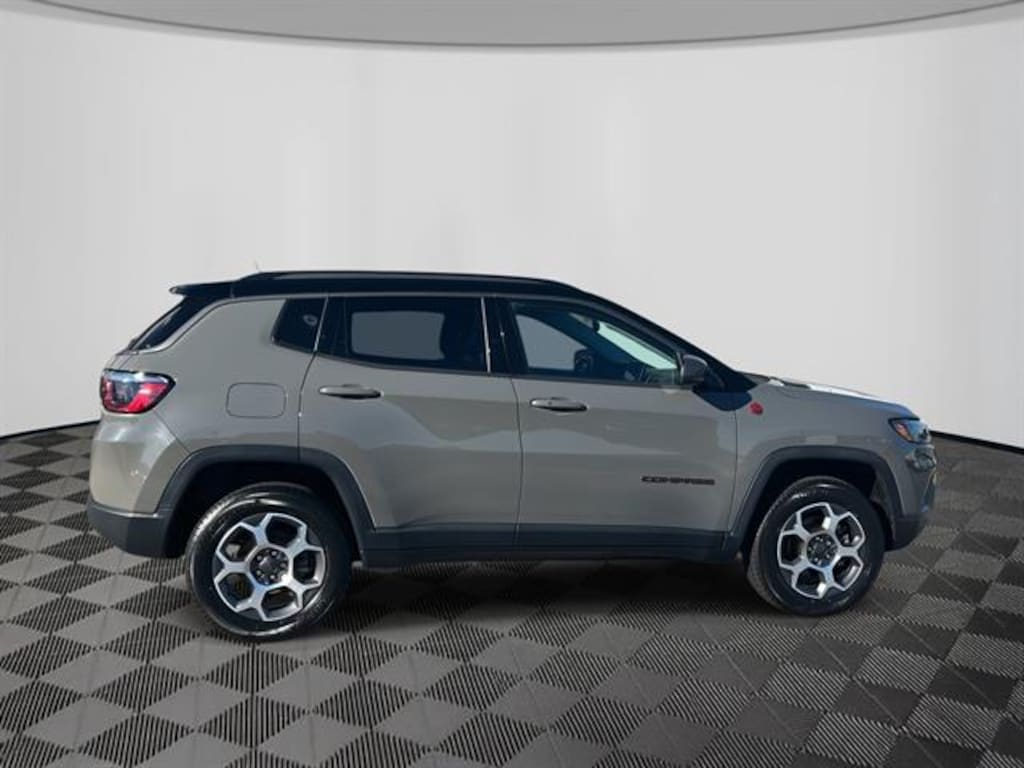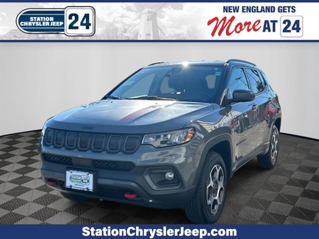 Clean CARFAX CARFAX One-Owner Front License Plate Bracket, Quick Order Package 2GE, Trailhawk Convenience Group Low miles! 3,708 Miles Below Average Station Chrysler Jeep is Massachusetts's Premier Family-Owned New Chrysler Jeep and Used Car Dealer, serving the needs of customers from Mansfield, Foxboro to Norwood, Plainville, Attleboro all the Greater Boston Rhode Island area, and everywhere in-between. In addition to sales, we also offer a state-of-the-art service department with all Chrysler Jeep Master-Certified Technicians, an Auto center for quick in-and-out service, and of course an outstanding Parts department. Station Chrysler Jeep is your one-stop-shop for all your automotive needs so don't hesitate; Call us now and ask to speak with one of our fully certified and customer-friendly Sales or Service Consultants. From there, you will be able to schedule a test drive, Brake job or Oil Change of any of our 11 locations. We have New and Pre-Owned vehicles on the lot! Here at Station Chrysler Jeep of Mansfield, our primary purpose is to serve our customers from Norton, Attleboro, Mansfield, and the surrounding Massachusetts communities in as many ways as we can. Adventure awaits in this Gray 2022 Jeep Compass Trailhawk 4x4! Built for rugged terrain and city drives alike, this Trailhawk comes equipped with off-road tuned suspension, front and rear skid plates, hill descent assist, and rear tow hooks for all your journeys. Stay connected and entertained with a 10.1-inch Uconnect touchscreen, wireless Apple CarPlay and Android Auto, SiriusXM, and Wi-Fi hotspot capability. Safety is a priority with adaptive cruise control, lane keeping assist, blind spot monitoring, rear cross traffic alert, front automatic emergency braking, and pedestrian detection. Enjoy comfort with leather-trimmed upholstery, dual-zone automatic climate control, heated mirrors, and a customizable instrument cluster. Practical features like a full-size spare tire, roof rails, and split-fold rear seats make this Compass ready for any adventure. Schedule your test drive today and experience why the Trailhawk is the ultimate blend of capability and modern tech!