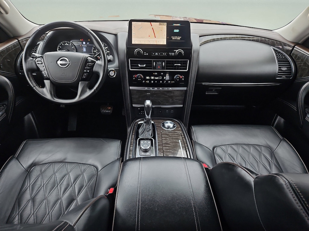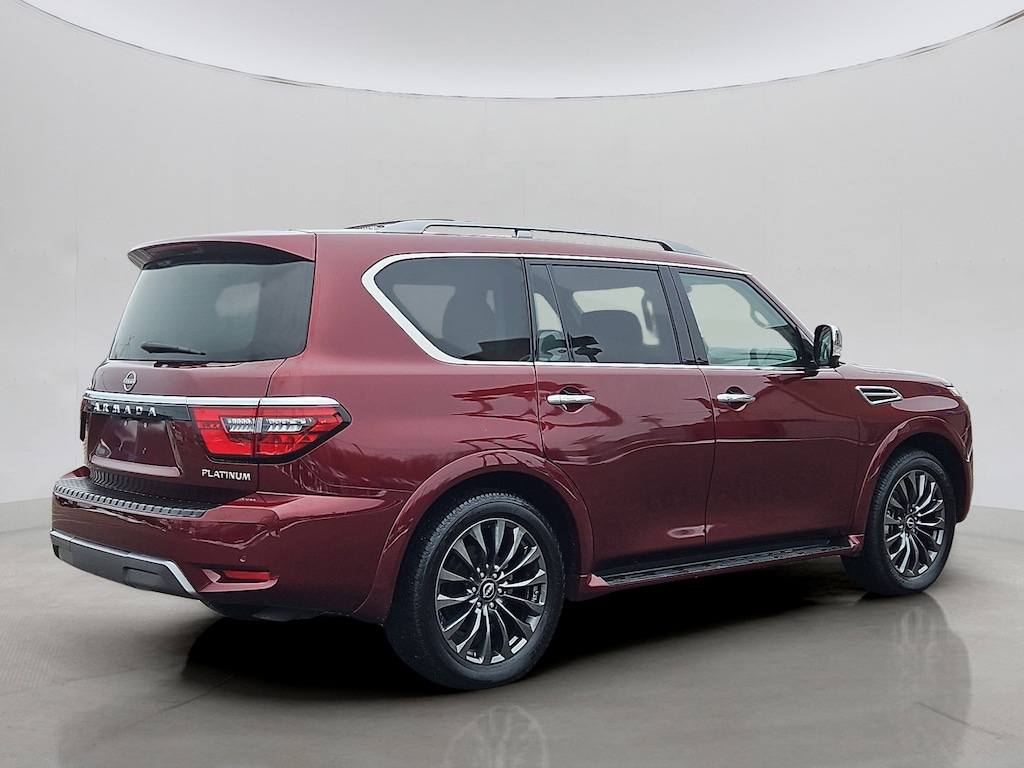 Experience luxury, power, and capability with this Dark Red 2023 Nissan Armada Platinum 4x4 SUV. Powered by a robust 5.6L V8 engine paired with a 7-speed shiftable automatic transmission and advanced 4WD, it's ready for adventure or daily drives. The Platinum trim pampers you with premium leather-trimmed seats, heated and ventilated front seats, heated rear seats, and a heated steering wheel. Stay connected with a 12.3-inch infotainment touchscreen, wireless Apple CarPlay, Android Auto, Amazon Alexa, and Bose Premium Audio. Driver assistance features include adaptive cruise control, lane keeping assist, blind spot monitoring, front and rear automatic emergency braking, and a surround view camera system for peace of mind. Enjoy the convenience of a power moonroof, power folding third row, remote engine start, and a hands-free power liftgate. With seating for up to eight, tri-zone automatic climate control, and rear entertainment system, this Armada is ready for your whole crew. Don't miss this exceptional blend of luxury, technology, and utility in a full-size SUV-schedule your test drive today!