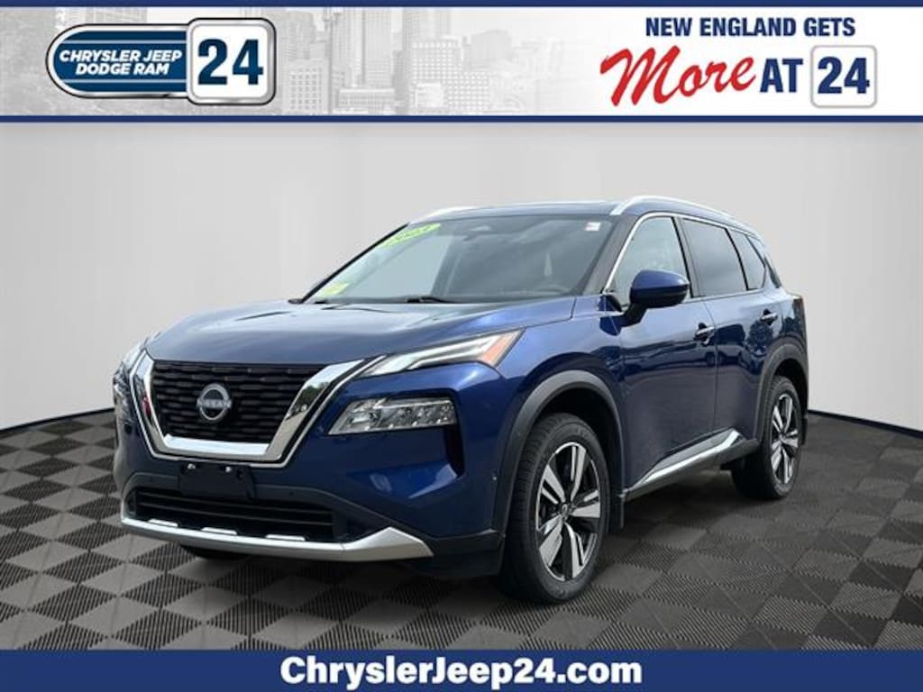 Clean CARFAX CARFAX One-Owner Experience luxury and performance in this Blue 2023 Nissan Rogue AWD Platinum. With all-wheel drive and a fuel-efficient 1.5L Turbo engine, this crossover is ready for any adventure. The Platinum trim pampers you with Semi-aniline leather upholstery, a panoramic moonroof, and heated front seats and steering wheel. Enjoy seamless connectivity with Wireless Apple CarPlay, Android Auto, and NissanConnect, plus a 9-inch infotainment screen and Bose premium sound. Safety is first with adaptive cruise control, surround view camera, lane keeping assist with blind spot integration, front and rear automatic emergency braking, and pedestrian detection. Convenience features include a power liftgate, remote engine start, customizable 12-inch digital instrument cluster, and multiple USB-C/USB outlets. This Rogue delivers space, style, and advanced technology for a truly premium driving experience. Schedule your test drive today! Chrysler Jeep Dodge Ram 24 is your one-stop-shop for all your automotive needs so don't hesitate; Call us now and ask to speak with one of our fully certified and customer-friendly Sales or Service Consultants. From there, you will be able to schedule a test drive, Brake job or Oil Change of any of our 11 locations. We have New and Pre-Owned vehicles on the lot! Customer First Award for Excellence CJDR 24 is committed to offering our Brockton customers with the highest level of customer service, which is why we are thrilled to be a honored recipient of the FCA Customer First Award for Excellence. This prestigious award is designated for only those dealerships exemplifying extraordinary care and dedication to their customers, in five key areas of performance: Give us the opportunity to show you. Call or visit us today.